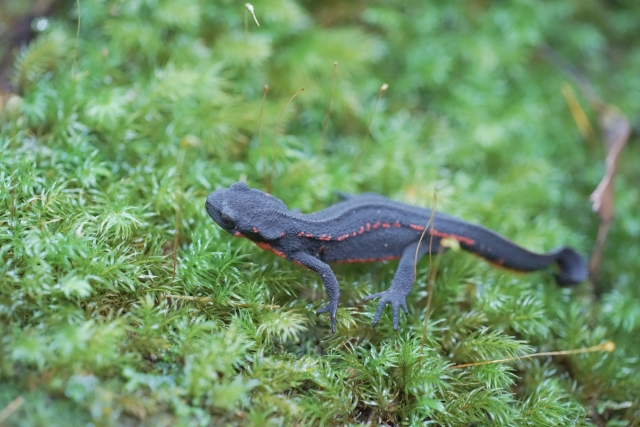 イモリは日本各地の池や田んぼなど、水辺に生息する両生類です。特に有名なのが「アカハライモリ」で、腹部が赤く、毒を持つことで知られています。
